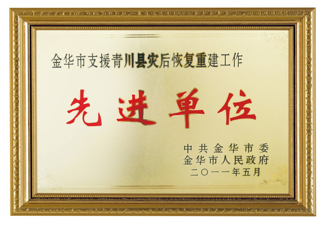 金華市支援青川縣災(zāi)后重建工作先進(jìn)單位